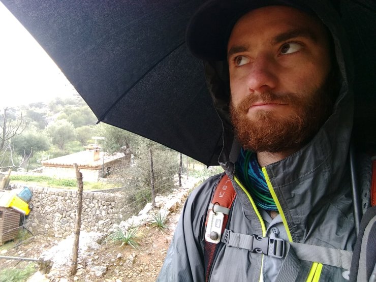 Down, while traversing the wild Almadrà Valley, then up again using a small section of chains to safeguard a cliffy bit. Rocky cruising was great from there and I even spotted a smattering of sunshine. But wouldn’t you know it, as soon as I took off my shoes for lunch, the ‘passing shower’ from the forecast said hello.