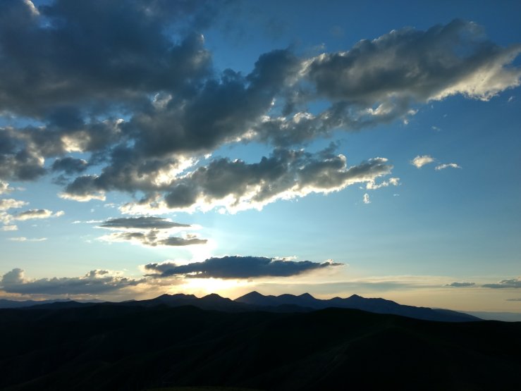 We took a hard left to follow another finger into the valley as the sun set behind Garfield Peak, not once but twice. We were planning on making it all the way down to the valley floor before camping. Instead we decided to take advantage of the views, lack of mosquitos, and dying breeze to cowboy camp for the first time on this trip half way down. No complaints here. That was hard walking and I think it earned us a sunrise to go with the sunset.