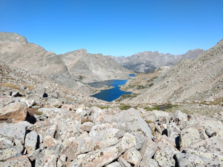 I took a two hour lunch. No sign of Spice. Where is she? Must be ahead. I got going, telling myself that everything was going according to plan. I took my time up one last climb to a saddle, stopping for final views up the valley, before dropping out of the Winds for good.