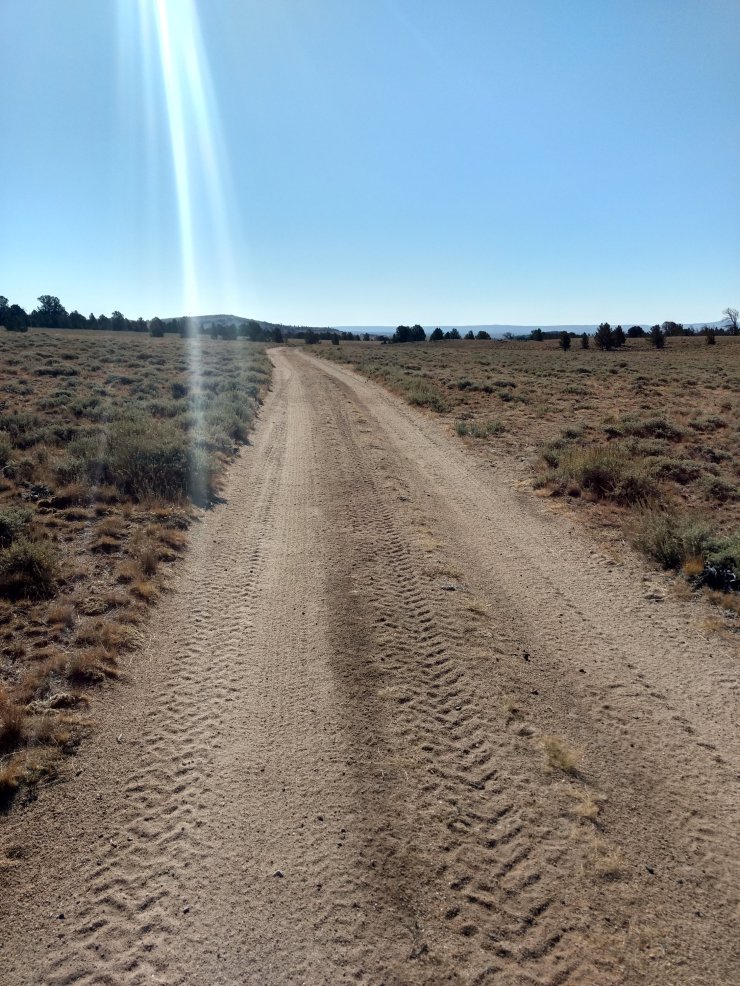 My mind was running over time trying to comprehend what I had learned from Spice yesterday. Could a pack really get stolen? What will it take to get her up and running again? The miles flew by. 13.5 miles by 10am. Out into the flat desert on a dirt road. Nothing around except for a few trees and the distant horizon.