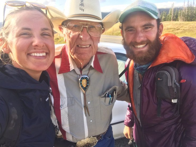 We dumped a lot of food from our boxes into the hiker box. How hungry did we think we were going to be? A walk down the road to Riverside produced some cool stickers from the visitor center and an expertly ordered custom vegan meal at the only restaurant in town. Cowboy, the elderly fellow running the visitor center then made good on his promise to drive us back to trail after closing for the evening. He was a hoot and I learned a lot in the short ride up to the Divide. We parted as friends with a promise to send a photo when we make it to the border.