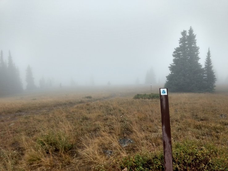 Camp was hard to find by headlamp in the cloud. Our bright beams illuminated mist and my breath so that I felt as though I was inside a giant lightbulb. But we found a good spot, and I ate a good burrito for dinner. It was a relief to finally lay down and hope for a warmer tomorrow. Colorado, here we are.