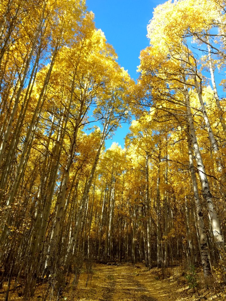 The sun was warm though, and the hills gentle, so the walking was sublime. Being behind the pack, I strolled without urgency as the trail took me down into a sunny valley, then through a portal of shimmering aspen. Gold in the sky. Gold on the ground. I felt the season distinctly in the air climbing up and around a lump on the dirt road. Yes, the sun was warm, but the chill of fall, perhaps winter, was in the air, painted in grays and yellows on the hillsides and in the valleys. I could see it. I could feel it. I could smell it.