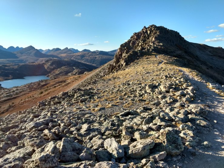 The San Juans made us work. But I almost didn’t even notice. SpiceRack and I covered a bunch of ground, the sharp peaks from the horizon of yesterday were scraping our noses this morning, and the big pyramid on the horizon of this morning turned into our backrest for the evening. I think that’s what I enjoyed most about the day, and perhaps the San Juans in general. The views are wide, and I am filled with the sense of undeniable movement, progress. The lack of trees means that we see everything coming from a long way away. The wide-open nature of this range helps us to cover those distances in surprisingly little time. Straight across a wide plateau, a long traverse around the slopes of a wide basin. There have not been a lot of switchbacks out here so far. Every step is getting us somewhere else. And that ‘somewhere else’ is a cool place to be.