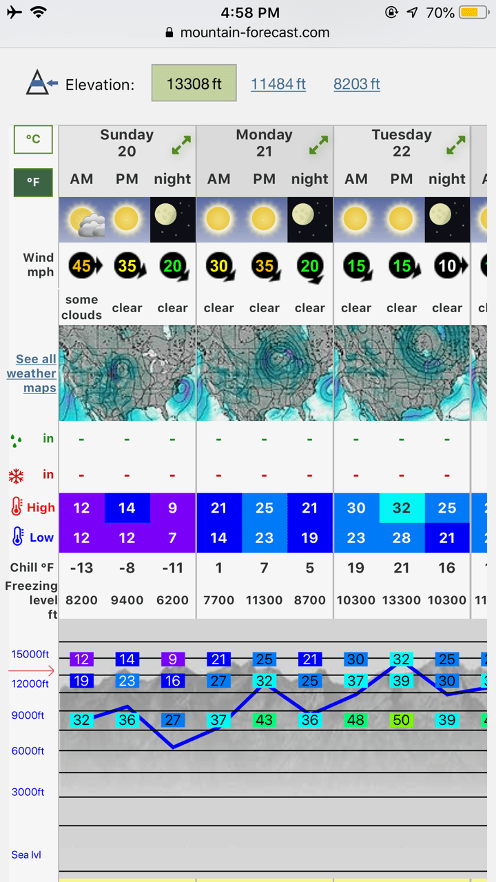We had decided to hold off making a route decision until this morning after getting a look at the weather. For me, that choice was made as soon as I got out of the tent. The sky was filled with clouds of dark gray, moving fast on an invisible wind. It wasn’t actively snowing on us, but I wouldn’t have been surprised if it started to. Wind still howled in the tree tops. I do not want to be on an exposed ridge today. No way.