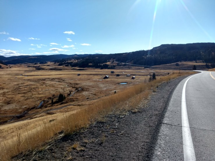 At the top of the hill we stopped for our final lunch in Colorado in a meadow, protected from the wind by the raised highway. Then we just walked and walked for the afternoon. The usual. At around 4pm we were still four miles from Cumbres, but traffic was light and we wanted to catch a ride to Chama, NM before dark, so we started poking out our thumbs for every passing car. This was our toughest hitch of the trail by far and it took us over an hour to snag a ride. We were only a little over a mile from the pass by the time we got picked up.