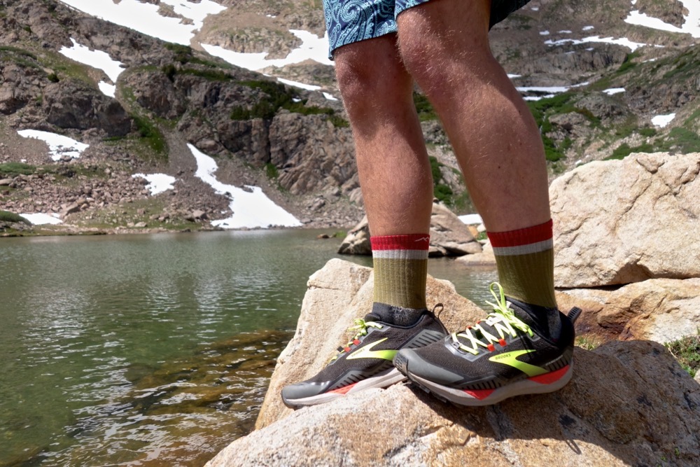 Protection: A Ballistic Rock Shield combined with the familiar Brooks BioMoGo DNA cushion prevents those pointy rocks and roots from bruising your soles. Whether you are trail running or backpacking, this is important. I carried a pack over miles of pointy basalt on the PCT rather mindlessly and didn’t bottom out once despite my lack of care. The cushion of the BioMoGo (I could say that all day) is noticeably firmer than that of the Altras I am used to.