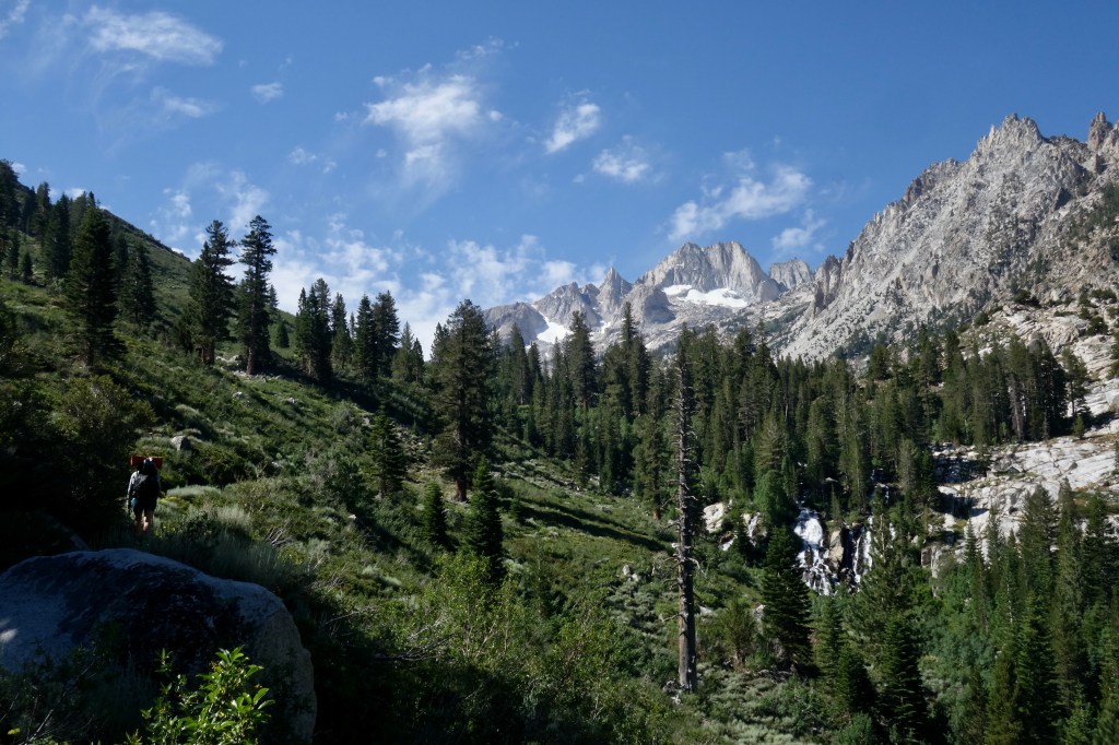 Once we made it out of the packed campground, full of RVs for the holiday weekend, we only got a little lost finding the trail. Across a creek, then up to some switchbacks, swatting mosquitos from our ears. The trail smelled like home — warm sagebrush, dirt. The plants were the same, the trail tread looked the same, everything felt the same. The only thing that had changed since my last Sierra trip in 2017 was me. I’d been many places since then and hiked many miles. My life has taken turns that I could never have anticipated during the intervening years, a wild ride that I have loved. But I missed these moutains. This was the year I needed to come back. It felt the same, and that was all I wanted.