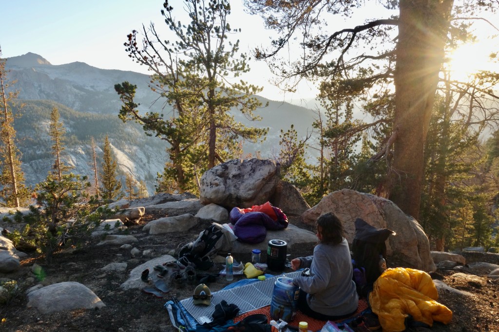 At 8:40am it was time to hit the trail. The world was quiet and calm along the Tuolumne River. A peaceful start to the section. We turned up the Rafferty Creek trail to Vogelsang and put it in cruise control. I was a little too full to be comfortable and the chana was kicking my gas production to epic proportions, but the walking and conversation were easy. By 11:15am we were already 7 miles in, at Vogelsang High Sierra Camp.