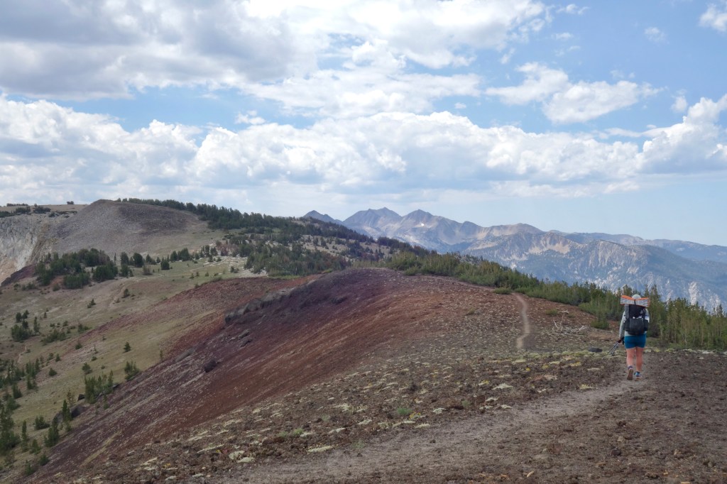 The light use trail was pretty good, and then improved at the intersection of the trail to George Lake. Clouds built steadily as we cruised, occasionally casting their glorious shade over us like a damp towel. As the ridge rose higher and the clouds grew darker, I began to worry about being in a bad place during a thunderstorm. Fortunately, the only thing we needed to worry about was the lack of water. For the first time on this trip water was scarce and we needed to ration what little we had. A smattering of rain fell, but the big storms lingered on our horizons, not above. After some glorious miles, the trail steepened down to Deer Lakes, dissolving both of our concerns.