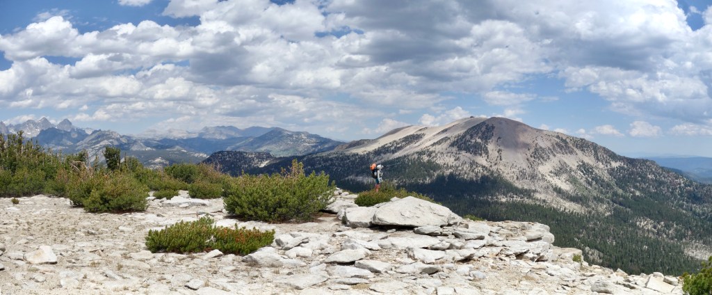 The views up top were totally worth it, of course. Riding the wide ridge south, we were surrounded by a spectacular panorama that included the familiar Ritter group behind us, the oddly bald cappuccino lump of Mammoth Mountain rising above a grip of lakes, and the mighty Silver Divide spread across the horizon in front of us. Surrounded by air on all sides rather than sloshing in a glacial bowl of granite, Spice and I both had the feeling that we were back on the CDT, where this was the norm for days at a time.