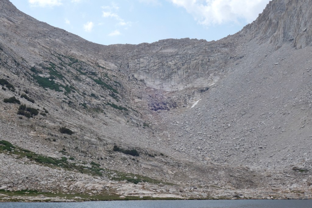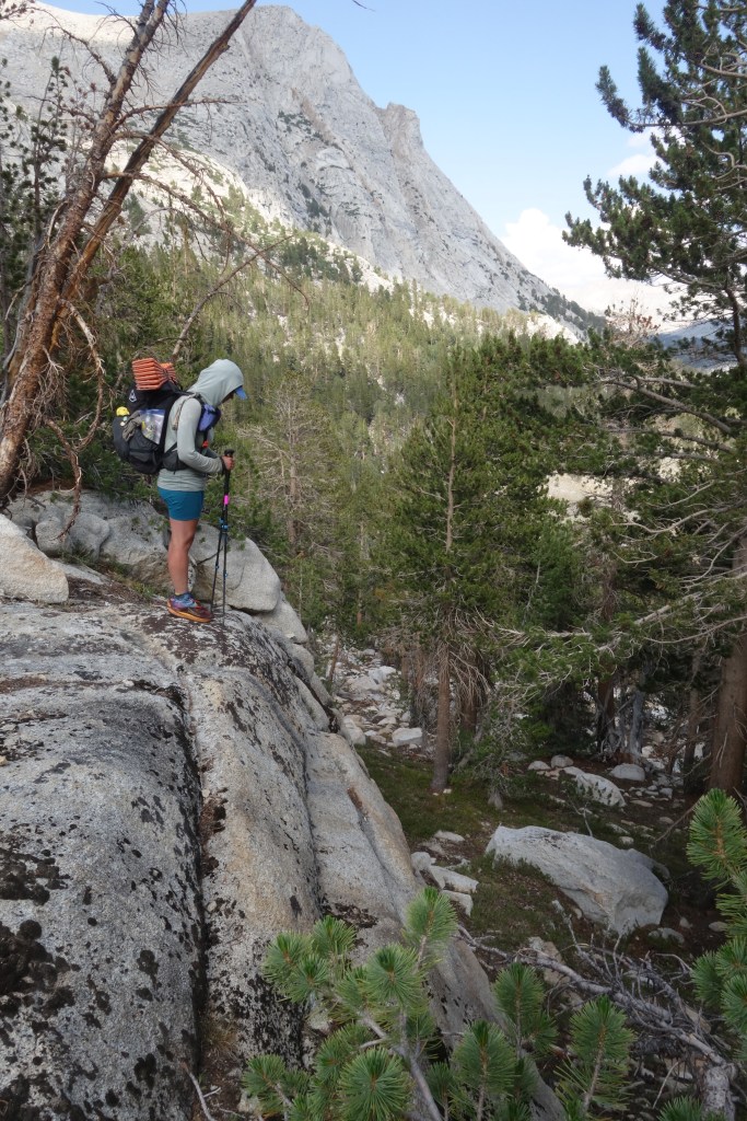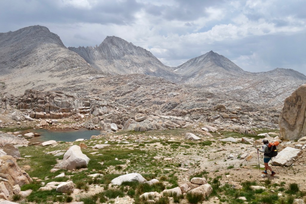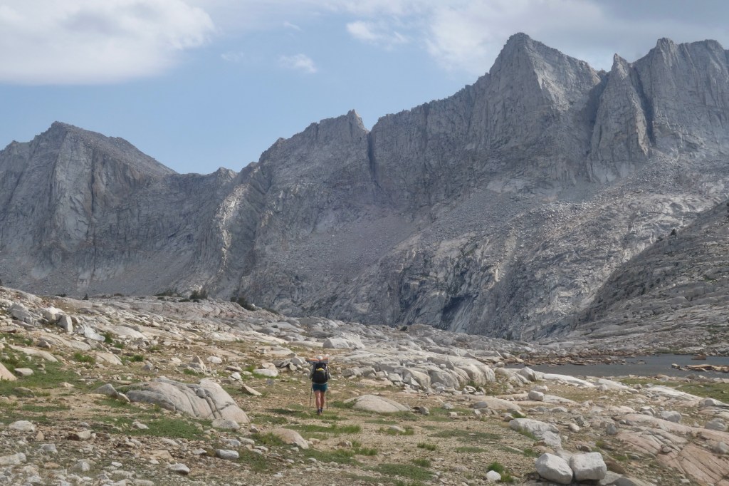 For most of the day we didn’t see single tree. That statement is certainly hyperbolic, but drives home my point. The terrain between Gabbot Pass and Merriam Lake was lunar in the ‘doesn’t actually look like the moon, but looks strange and desolate like the moon’ kind of way. That made for some pretty neat walking and looking, but it is also a hard way to live. By the time our route dripped us back below treeline in the afternoon, SpiceRack and I were both seared and crispy. Probably dehydrated too despite the abundance of water in these mountains. Neither of the two passes we crossed was particularly challenging physically, though tricky route finding all day kept our brains whirling. From there, to here. Another day south.
