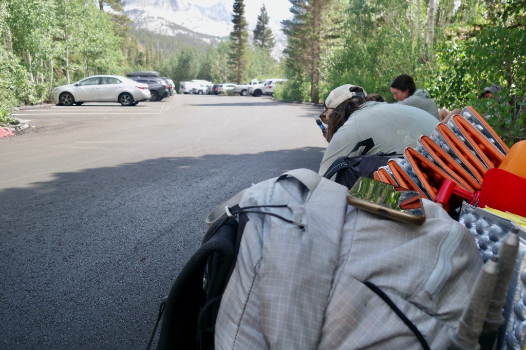 I didn’t find the answer to that question either, but Spice and I did make it to the trailhead at South Lake by our 2:30pm target. Right behind us were two other hikers that we’d been leapfrogging for the past 24-hours, Stripes and Jet Fighter, who joined us on the hot pavement of the parking lot to await a small miracle: the elusive, four-person hitchhike.