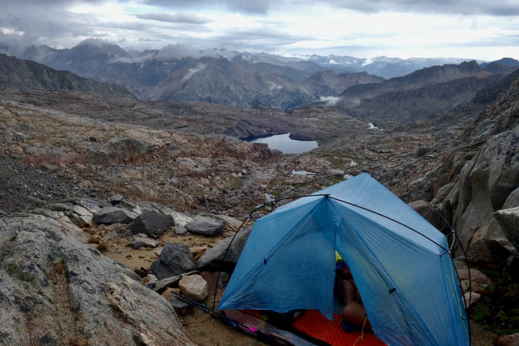 Not knowing how long this would last, our situation felt bleak. Even if the rain relented, the nature of this terrain wouldn’t allow for safe travel until the rock had a chance to dry. With rain in the forecast tomorrow, it was possible, I thought, that we would need to hunker down for the duration. Can we afford to lose a day? Man, this freaking sucks. There were less than five miles of cross-country hiking between us and a long section of JMT. If we just got enough dry time to make it there then we would be home free. Following a trail in the rain isn’t always fun, but at least it’s possible and relatively safe.