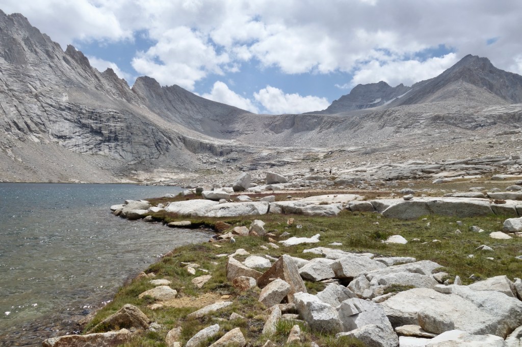 The morning sun was bright on the distant Kaweahs when I peaked from my quilt. Wright Lakes Basin and our camp were still caught in the dewy dampness of dawn, so I snuggled deeper to await the morning thaw. By the time SpiceRack and I had dried our gear and packed up, it was a little past 8am, a little later than usual, but there was no rush today. With Mount Whitney waiting for us like an insurmountable wall at the end of our day, the distance we could cover was capped at under 10 miles. Granted, even such a relatively short distance could easily take all day, but I found comfort in the upper boundary. I knew what I had to do. Nothing less, nothing more.