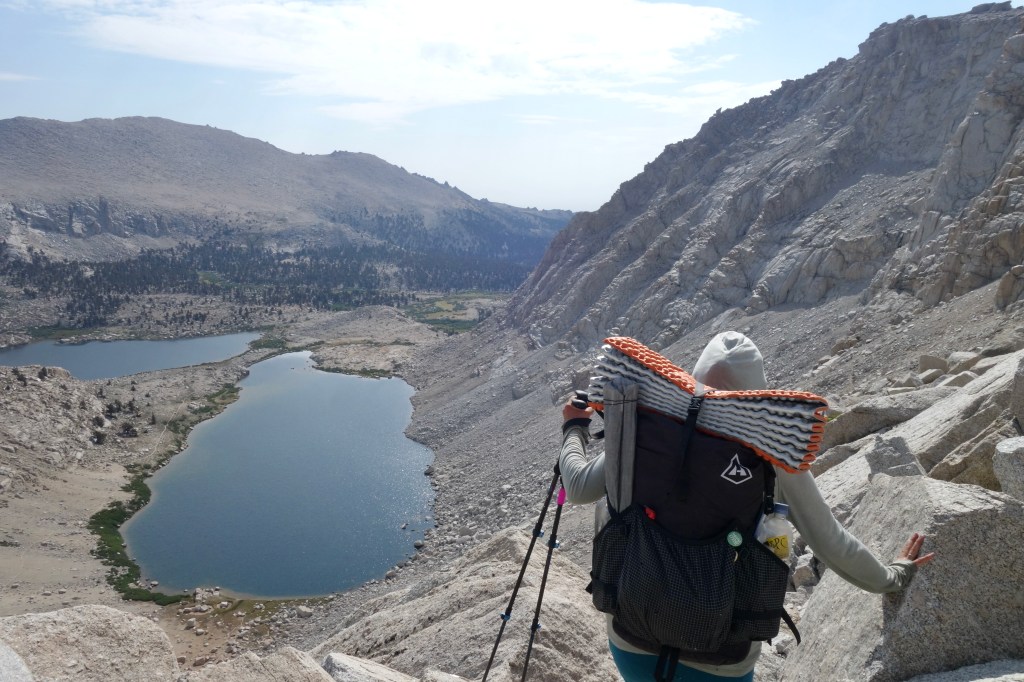 The trail was gnarly for a trail with a few scrambles over big boulders, but quickly we were down at lake level in Cottonwood Lakes Basin. We gave the generic movie game another shot as we wound around the sparsely-treed shores of numerous lakes. The trail widened and the frequency of passing backpackers skyrocketed. Despite the bouncy gait of a shirtless bro, I recognized a massive meadow as the last viewpoint before the trail plunged below treeline for good. Turning around, sweeping my gaze from Cirque Peak to Mount Langley, soaking in the gray cliffs and crumbles in between, I wondered out loud when I might return to this place. When will I see these mountains again?