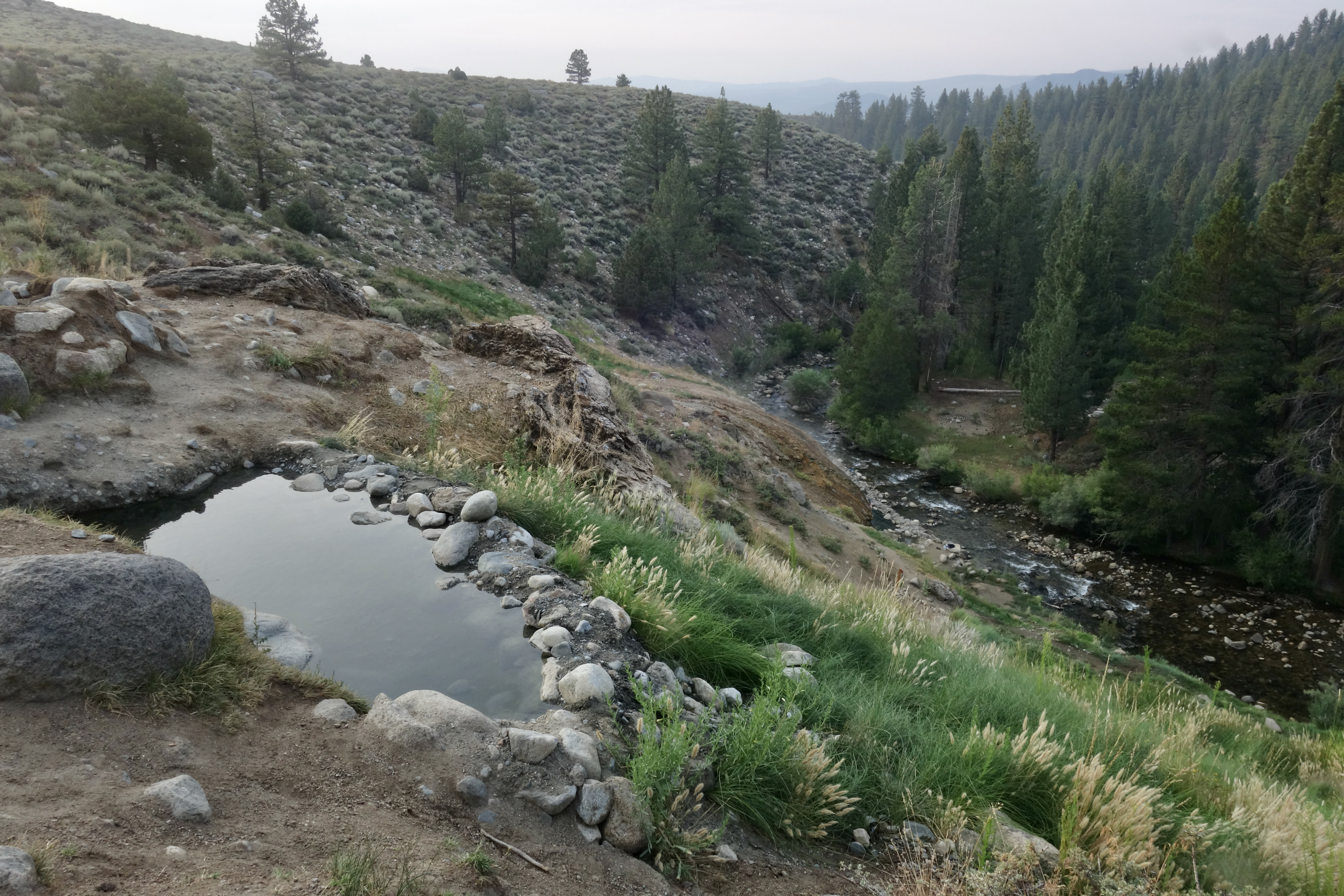In less than three hours we traversed the same latitudes that had taken us three weeks to walk, even with a sushi and fruit stop at the Bishop Safeway. As incredible as it seemed, our car was still intact, just the way we left it. Time warped as I fished for the key in my backpack. Did we really hike all that in just over three weeks? It didn’t seem possible. The car fired right up and we caravaned with Jake to the nearby hot springs where we had spent the night before Day 1.