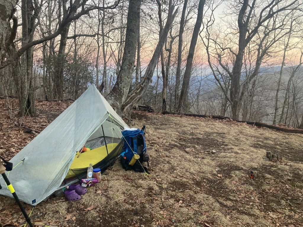 I could have hiked like that forever. I wish the sun had stayed high, that I could have lived in those sweet moments. They will be hard to match. The sun sank below the western ridge as I pulled into camp at Panther Gap. With views of the valley below and all the way back to Albert, I pitched my tent and sat in the warm evening air, waiting for my couscous to soak. I lay down thinking that this was by far the best day on trail yet. Each one brings its own challenges and rewards, and on days like today, no searching is needed to find the good stuff. I’m soaking in it.