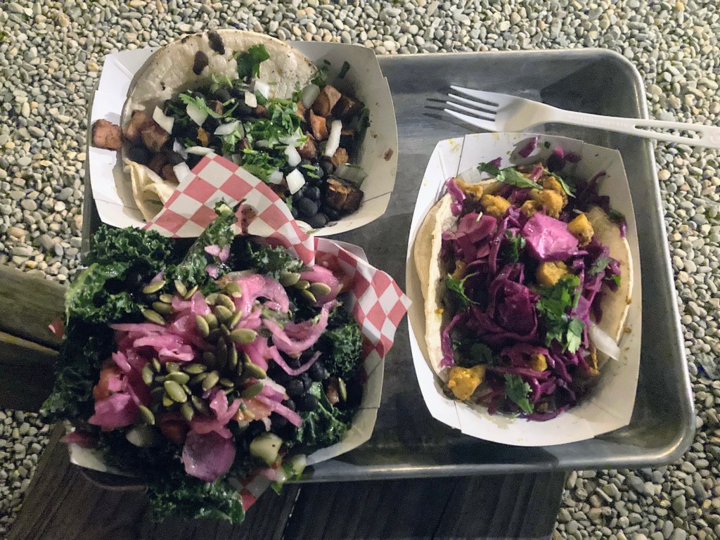 After a call home to my parents, I headed to the brewery/taqueria to see what kind of burritos they had on offer. I settled for tacos and a kale salad. All super tasty. All awesome, in a my-body-needs-this kind of way. Fresh food is so good. Satisfied, I ambled the few blocks back to Sunnybank. The warm night air felt good on my bare legs. The harsh concrete felt foreign to my trail accostumed feet.