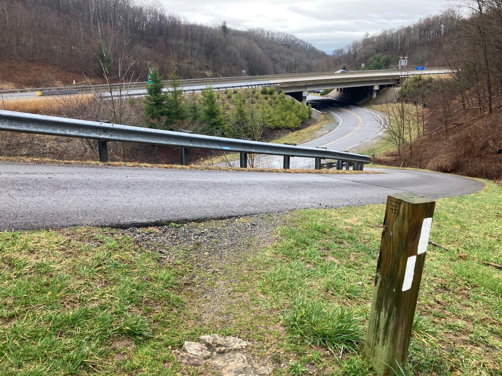 I got on the trail wearing no extra layers. The world was damp, and it was warm. I made quick work of the smooth trail down to the highway at Sam’s Gap. Trucks screamed by, so many trucks, as I followed the white blazes through the underpass and back into the trees on the other side.