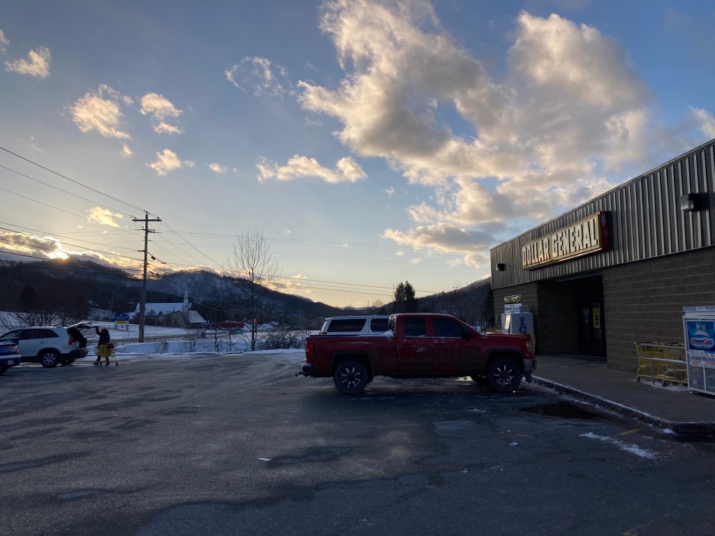 The sky was clearing up and the air much colder when we ventured out. It was a beautiful scene, but one that I could only visit temporarily, even in all of my layers. The temperature was somewhere south of 10F, and still falling. The Dollar General had closed early for the weather, and the other small grocery had just enough to supplement my other provisions. No bars, so I’ll be eating a ton of Pop Tarts this next stretch.