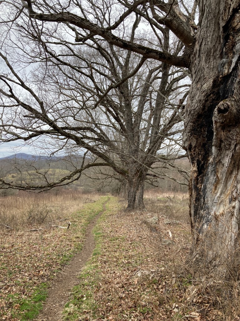 A gentle old road-turned-trail brought me down the opposite side of the ridge, depositing me in a gorgeous pasture at the bottom of a narrow valley. The wind still kept me moving, but I couldn’t help stopping frequently to spin in place to absorb the bucolic scene. With the weather as chilly as it was, it was fitting to find this area empty. It was still hibernating, perhaps just beginning to think about starting a productive summer cycle. In a few weeks or months, I’m sure it would be teaming with life, animal, insect, and hiker.