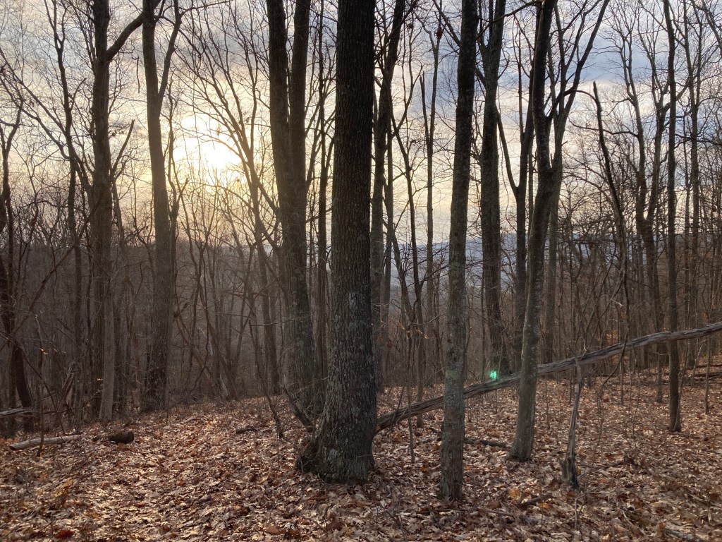 With recovery measures underway, I continued the easy trail down to, then across a paved road, then up to the opposite ridge on gentle switchbacks. Pine needles whispered in the canopy above and squeaked with a muted crunch under my feet. On top of the ridge, a rocky limestone trail transitioned into that really easy, old roadbed flat before I could become too frustrated with the slow progress and uneven footing. I gulped liquid religiously, ever time my watch beeped to tell me that I’d hiked another mile.