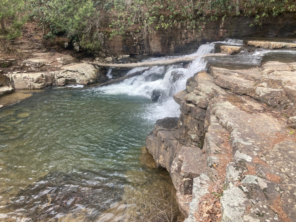 I did take the next short detour to the highly rated Dismal Falls, which was anything but. I dropped my stuff for an early lunch next to the rushing Dismal Creek as it slid, wide and glassy, across smooth steps of limestone on its way to plunging down a steep staircase into the churning pool below. I gathered water, soaked my feet, then put them up while watching a local cast for fish from the opposite bank. I just made out “they’re hitting corn!” over the rushing of the falls. Sure enough, an open can of corn sat next to his tackle box.