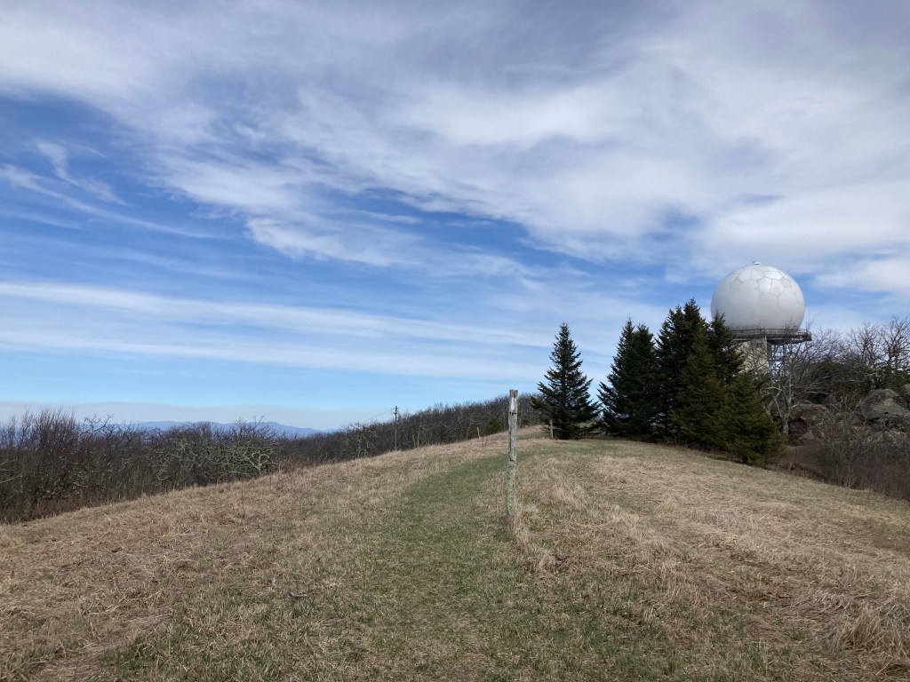 Black Rock overlook provided some cool views to the west, rolling pastures under a hazy sky of changing weather. Then it was up to Apple Orchard Mountain. I actually needed to remove my wind jacket for the steep climb, hiking in just my shirt for the first time in days. It felt weird, exposed, good even. As I neared, then eclipsed, 4000ft in elevation, tiny pockets of white from the last snow huddled in the shaded valleys of trees’ root structures, final holdouts of winter’s rear guard. On top, a grassy meadow afforded some views, but my attention was kept by the giant golf ball radio tower perched behind razor wire on the summit. I’d thought I could make it out from the summit of McAfee Knob a few days prior and wondered what it was. I didn’t expect to come so close, but it had been the tallest thing on the distant horizon. Of course the AT was going to take me there. I should have seen it coming.