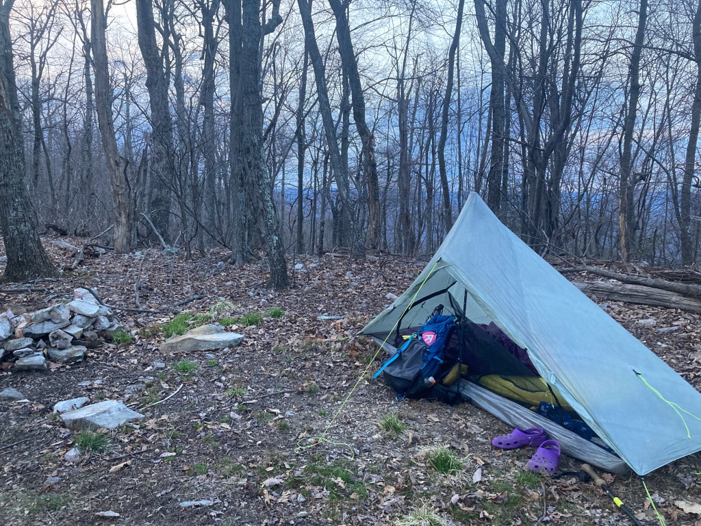 U2’s track, Volcano, looped in my head for some reason as hiked fast, thirsty and smelling camp. I was called to jog some easier portions. Stubbed toes were plentiful. I grabbed a liter of water at the next stream, just enough to get me up and over the last major obstacle of the day, Highcock Knob. Again, I found myself thinking, “of course the AT goes right over the top of the highest thing around.” The trail was rocky and steep on the way up, but smooth and gentle on the way down. Just the way I like it. I ate all my remaining snacks for the day as my pace slowed and my mind fatigued. I still had a few miles until camp, but that last climb killed me. I was gassed.