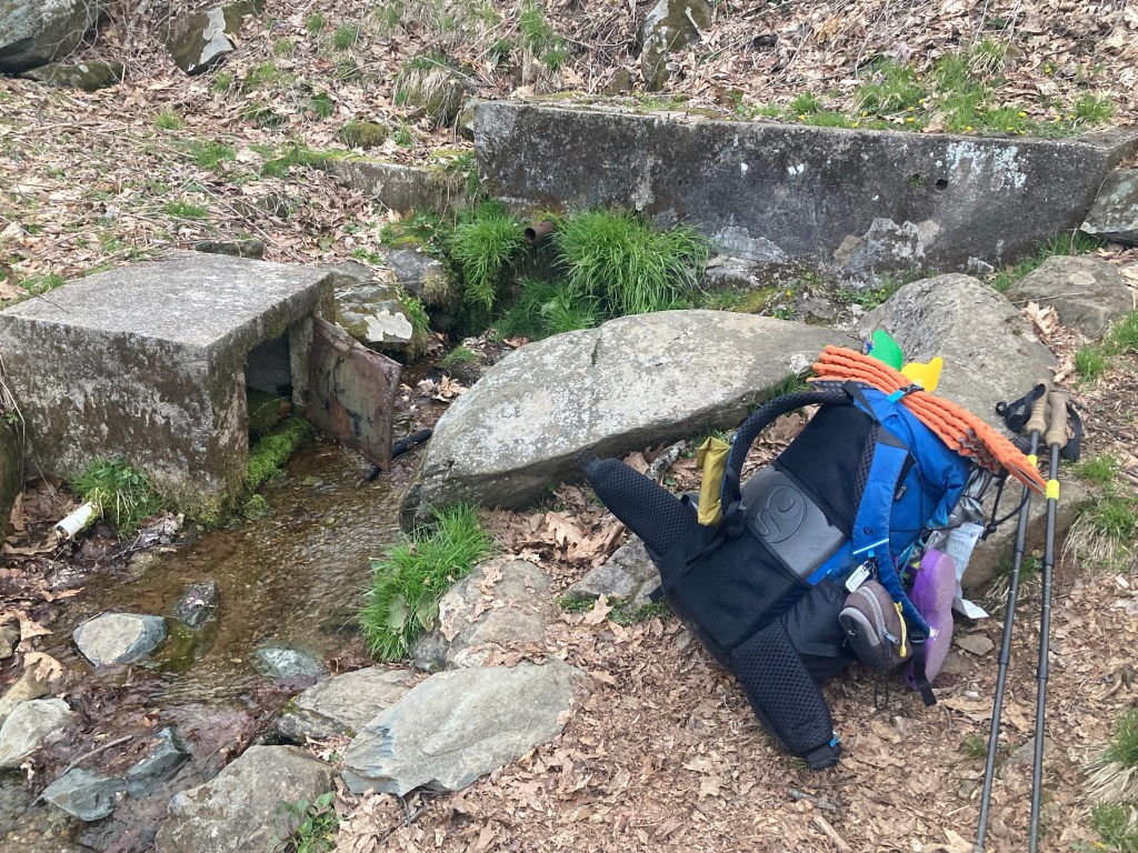 My energy dipped soon after lunch and I was feeling pretty worn out for the next seven mile push to Hightop. Near the wooded summit, I collected water from a spring boxed in concrete, relishing the excuse to stop for a few minutes. Usually I stand and stretch while gravity pushes water through my filter, but I sat this time. Feeling the new aches, deciding that it was definitely time for new shoes.