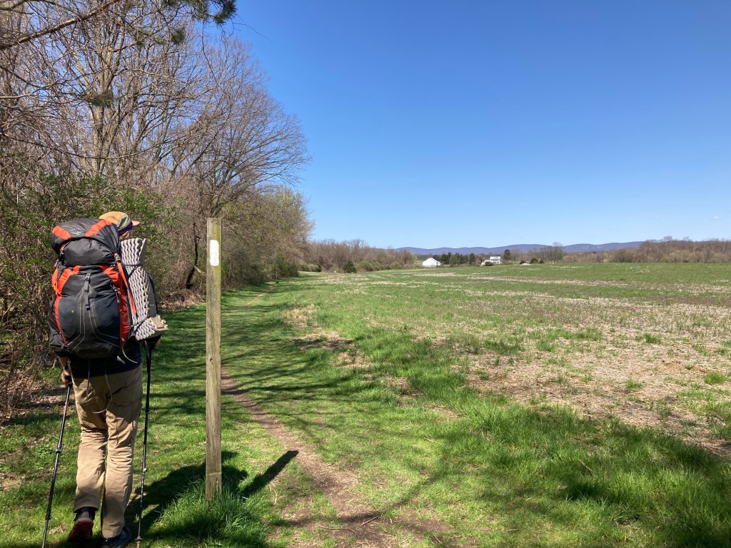 At the bottom of the descent, the trail exited the forest and made a sharp turn along the edge of a wide field. The near horizon was near, where the green made a shallow lump to meet the sky, and the far horizon invisible across the flat expanse of the Cumberland Valley. The trail turned sharply again, headed into its heart, headed north. Fifteen miles of flat valley walking awaited me.