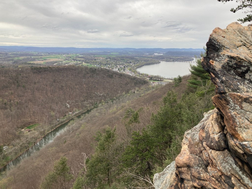 The miles walk through town was pleasant and beautiful. All the blossoms were out and the smell of fresh cut grass lingered in the air. A variety of homes, from quaint farmhouse to big and beautiful porchy ancients, scrolled by, and I shared a few waves with the locals. When the last home faded away, I crossed one big river, then the even bigger Susquehanna alongside screaming cars and trucks. From the river, I was afforded an intimidating view of the ridge ahead. I was sure that the trail to the top would be steep. But first, I needed to climb between the train cars that were parked blocking the trailhead. That was fun, and harder than any rocks out there.