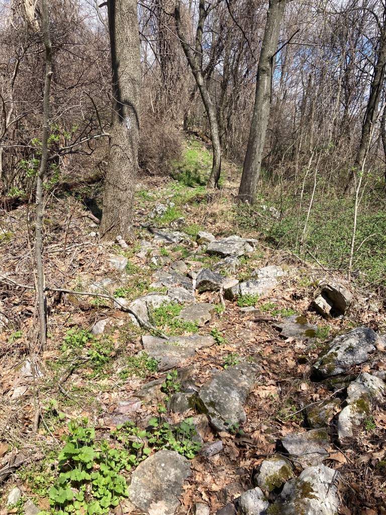 After crossing a paved road, the rocks finally began to live up to their reputation, which was a sobering realization for someone who already believed that the had. Perhaps they will still get worse, but it was hard to imagine how. Fields of big rocks alternated with winding paths of smaller rocks. Each style required full concentration for every step. When the rocks were small, an ankle roll was the risk. When they were large, a slip could mean faceplanting into a sharp fin of stone. My steps were either short and plentiful, or long and lunging. Every footfall was irregular, each one unique. I was grateful for my ankle flexibility and balance. Both served me well here.