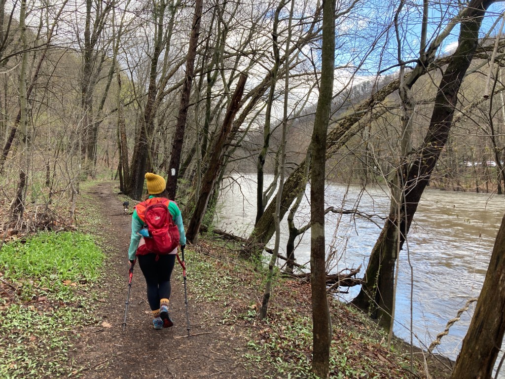 We all started out along the Little Shuylkill River, which didn’t look so little today. It moved fast and brown, high above the trees that lined its banks. Then we crossed under the highway bridge, where someone had scribbled in sharpie what appeared to be the entire Communist Manifesto on the green support structure. A steep hill waited for us on the other side, as hills always do, and we plugged away. It was pretty standard stuff to my eyes, but the environment was new to Spice. Her comments about the brown leaves and cool weather creating a late-Autumn vibe reminded me of my own during the first weeks of the AT. The season of brown leaves moves fast in the West, whereas it lingers, and perhaps never ends, in the Appalachians.