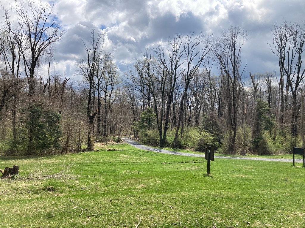 I met briefly with Cheif at the next spring, then made great time down an old dirt road, out of the snow and back into the green. I still hiked in my wind jacket even though the sun was breaking through again. The air was chilled and the movement too easy to generate much warmth of my own. At the bottom, I crossed through a wide patch of grass at the junction of two more old roads. It felt like a place of significance, historical at least, but a sign from 2012 commemorating the first 75 years of the AT was the only thing around. Remember when people thought the world might end in 2012? I hadn’t ruled it out myself. Lol.