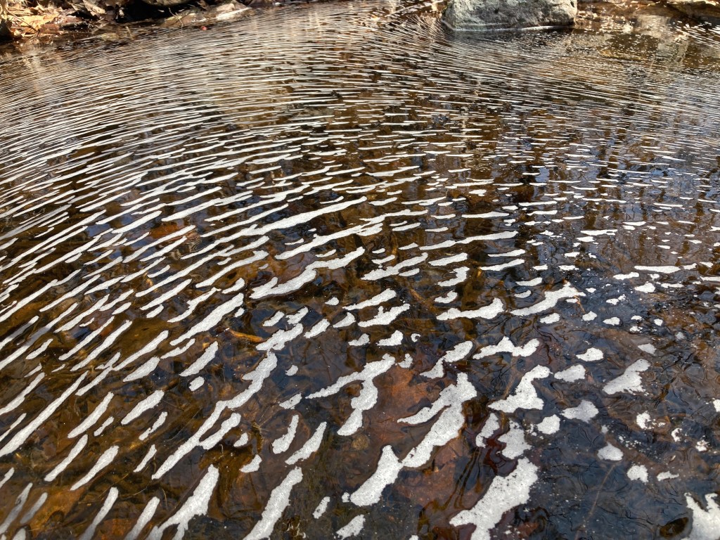 With a belly still full of van food, I hiked beyond my normal lunch time through the warm forest. I had it to myself now, and I hopped and skipped fast across the ever present rocks. These were slightly different from the rocks of Pennsylvania, a little bit friendlier. The corners were rounded, and often the entire trail surface was a smooth slab of stone, which made for easy skipping. This embedded granite also intrigued me, showing evidence of glaciation, with patches polished smooth by ice and grit. I’d learned about the phenomenon as a wee lad in Yosemite, and it was cool to see it here too.