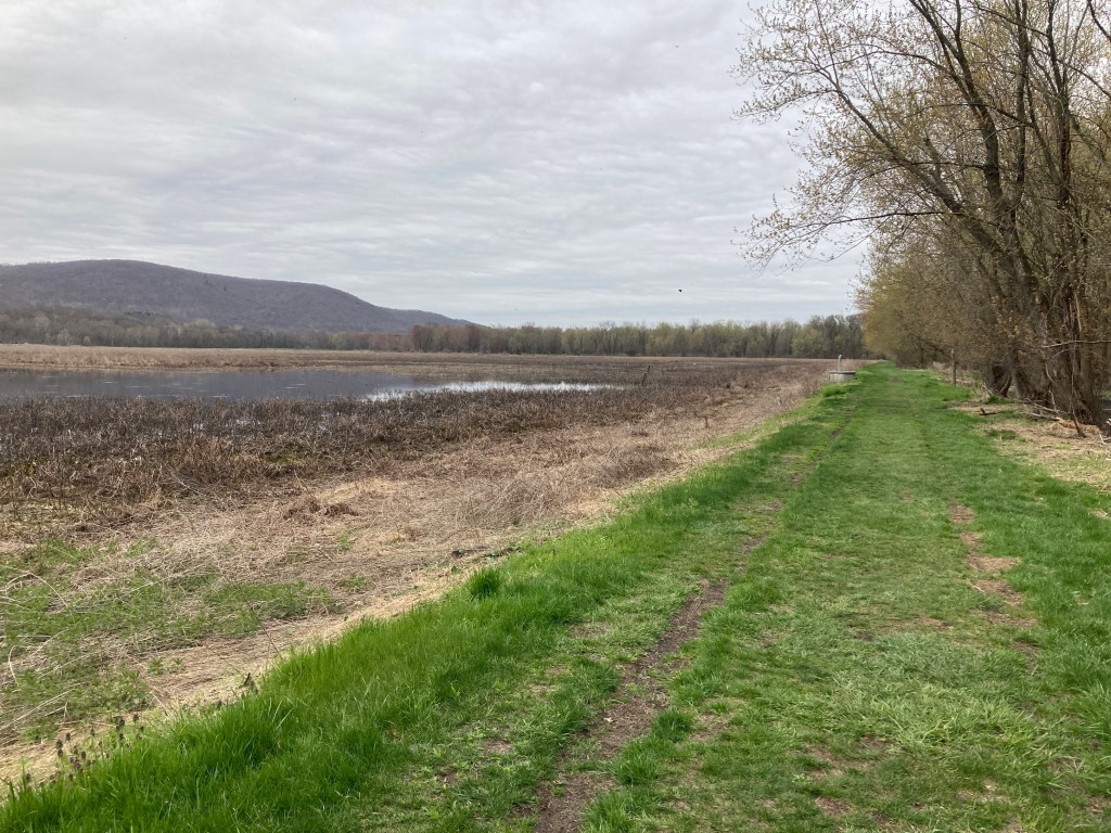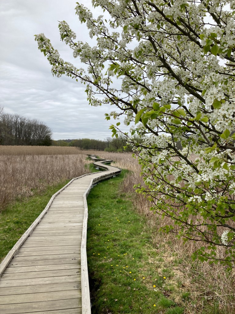 Then it got even faster after I joined a paved road for a mile, using its bridge to cross a wide creek, away from the scattered homes and into the wide and marshy expanse of a national wildlife refuge. I munched on my breakfast cookie as I followed the grassy levee around the soggy wetland, wondering what was making those loud sashing sounds in the dark water, looking for birds more interesting than the Canadian geese that had pooped everywhere. The new environment was a welcome change of pace from the hills, and I again thanked New Jersey for changing up the scenery.