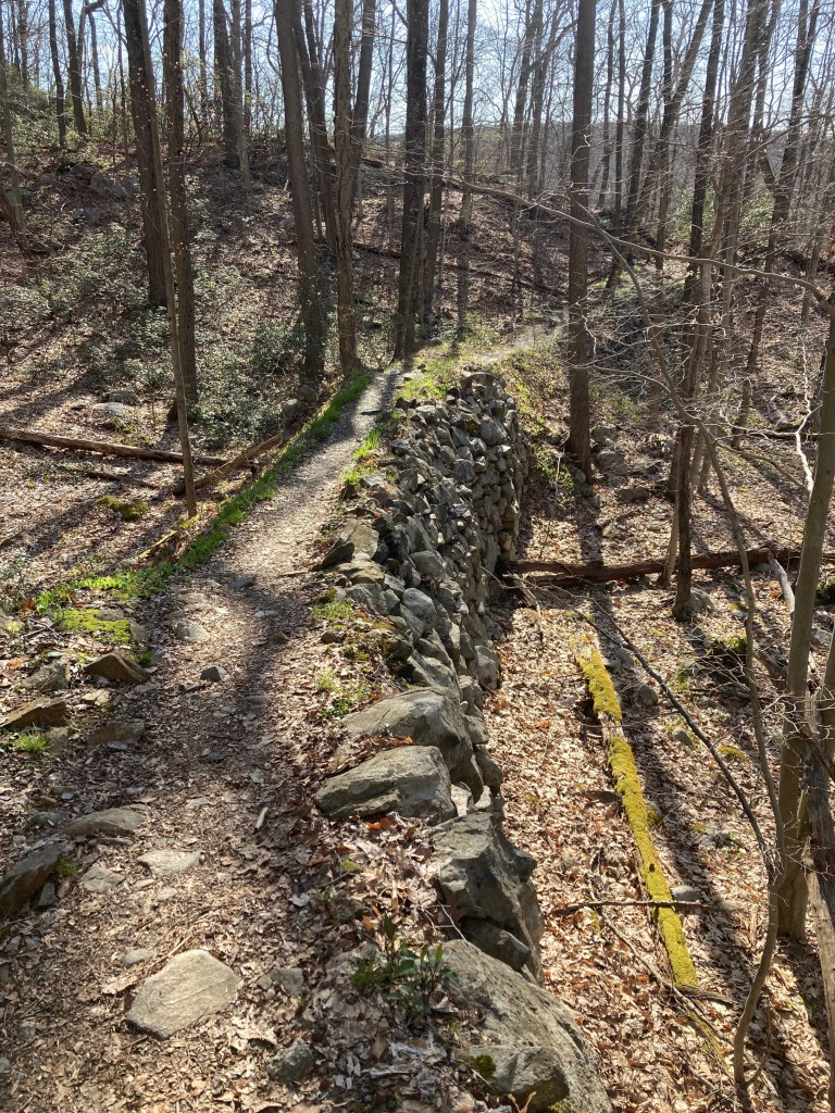 The afternoon push began with another road crossing, then a block’s walk through a neighborhood, and then another large highway crossing on an overpass. After that, my memories of the miles are mostly unanchored. The hills flattened so that there were no landmarks with which I could mark my progress. I just kept my eyes on my feet and followed the twisting trail around stone lumps and through holes in the old drystone walls. The tread was mostly smooth, probably because all of the rocks had been picked for the walls. That was my guess at least.