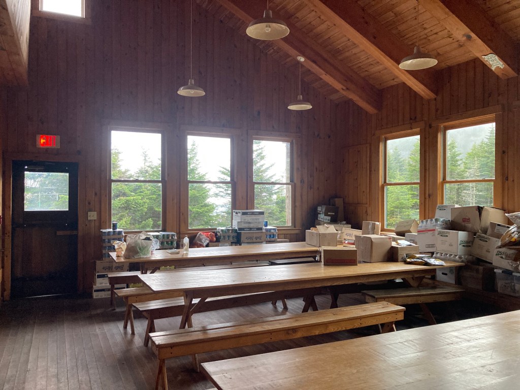 The main dining space in Galehead. I moved a bunch of boxes from here to the upstairs storage loft to earn my stay.