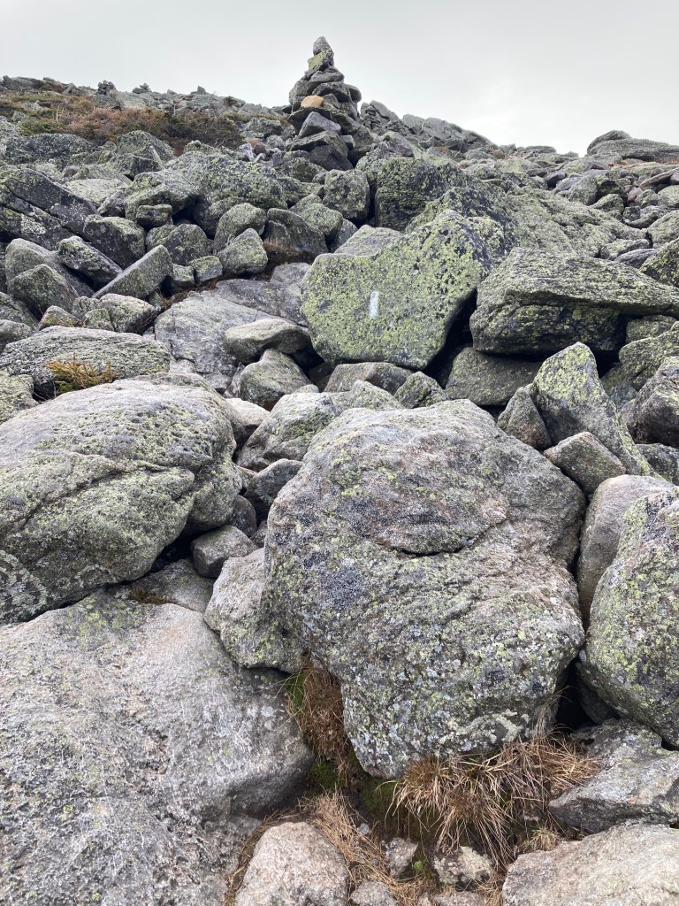 The sky was still clear when I started the morning routine, but by the time I hoisted my pack, the cirrus clouds of a weather shift covered half of the sky with obvious plans to conquer the second half as well. It was cold, somewhere just below freezing, and blustery with the wild winds of the alpine as textured and irregular as the jumbled rocks that passed for trail around here. However, I started with just my wind jacket for warmth. It was inadequate for lounging, but I wasn’t planning on hanging around. Mount Madison loomed ahead and would provide all the warmth that I needed.