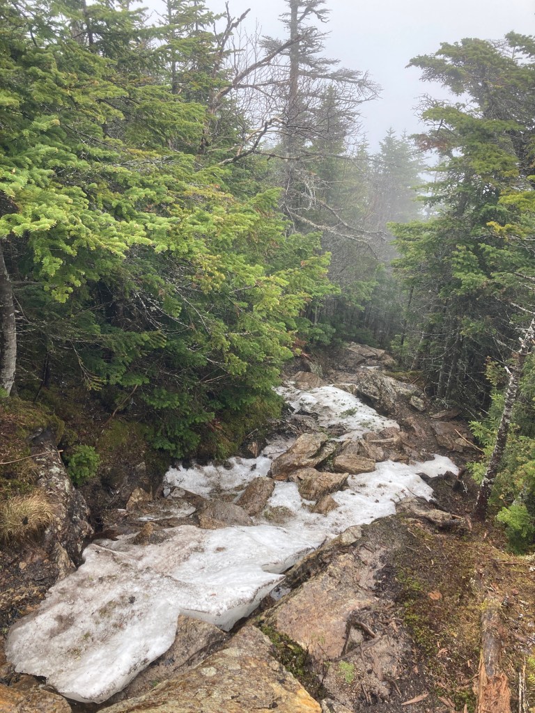 Today was the steepest. Today was the slushiest. After one final summit, I exited the Presidential Range, leaving behind one of the most glorious stretch of the AT so far, and ran straight into the leg-blender of the Wildcats and Carter Dome. Those names meant nothing to me this morning, but I will remember them for the rest of my life as those ridiculously steep mountains that I climbed in the freezing rain. As miserable as that sounds, it actually wasn’t that bad. I was full up on mind-boggling vistas from the constant visual bombardment of yesterday, so I didn’t mind keeping my head down and powering through the dreary weather and ladder-like ascents. With the stiff climbs and careful descents, I had no trouble staying warm, which was my top priority in such conditions. Echoes of the miserable end to my PCT thru-hike followed me for most of the day, but ultimately remained distant memories. It was certainly a hard day, but nothing worth moaning about.