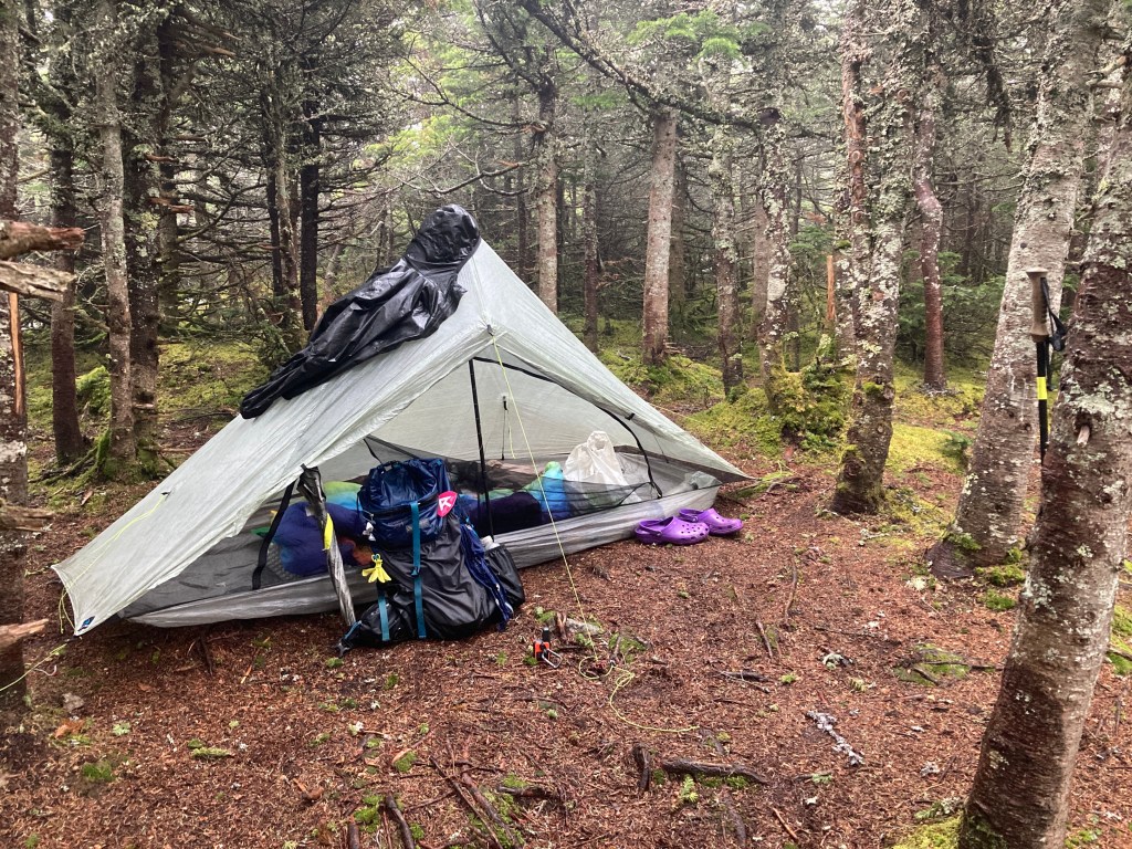 Even though it was only 6:30pm, I called a halt to the day near the summit of Mount Hight. I hoped for an epic view tomorrow morning, and I just didn’t feel like bouncing down and up again one more time in this weather. There was a perfect campsite tucked in the dwarf forest of spruce and moss, and I set up quickly, anxious to maintain my warmth until I could get under my quilt. It was below freezing now, and I knew that my dampness would be difficult to dry out if I let myself get chilled. Under the covers, wearing most of my layers, I scooped great globs of peanut butter while my couscous soaked, delighting in each hit of the fatty calorie bomb. And even though it was early, I had no trouble falling asleep when dinner was done. That is, once my Oreos ran dry. What a cold, miserable, and awesome day it had been.