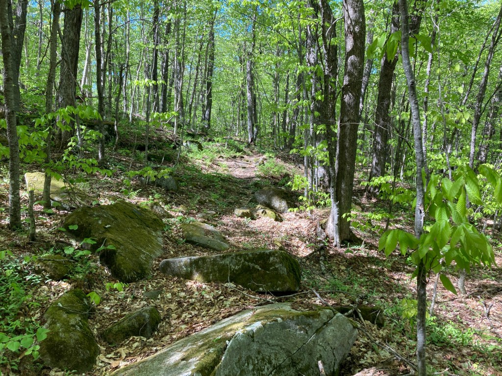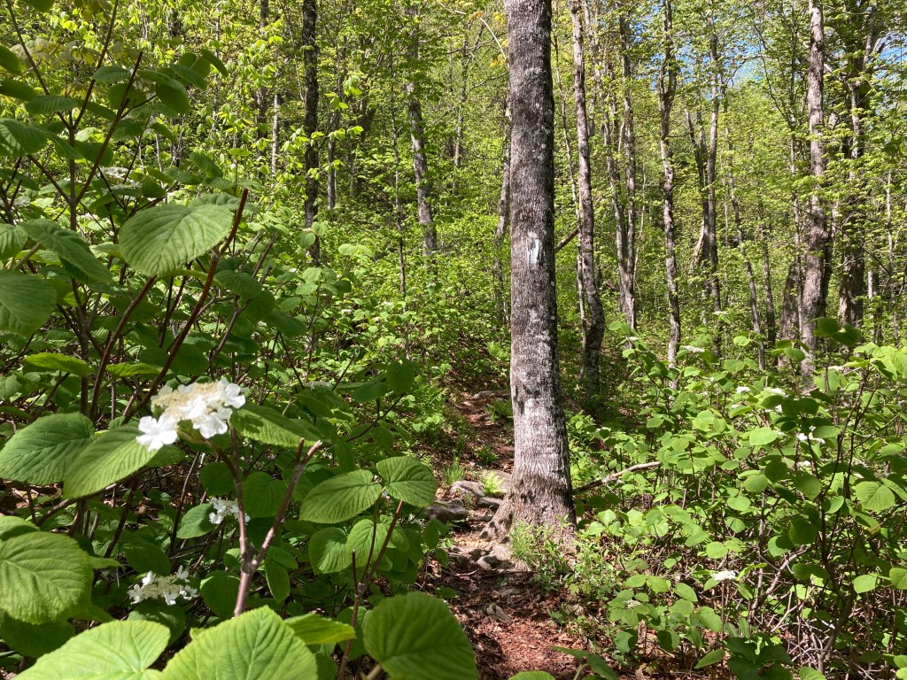 The final big ascent up Wyman Mountain was so gradual that it barely registered to my legs, and for that I was grateful. It had been a long while since the last time the trail didn’t take the shortest and steepest route to the top of something. Or maybe this something was just not that steep. It was hard to tell for all the trees. Was I on a wide lump or a sharper ridge? Now that the leaves had filled in, I was locked in my personal dome of green, deprived of greater context for where I was.