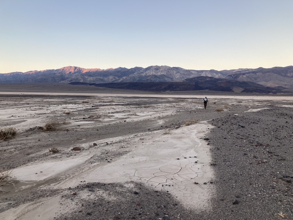 Another early rise to beat the heat. Like our pre-dawn start from Badwater on Day 1, Arthur and I faced many miles of hiking across a low-elevation basin that was sure to be roasting once the sun started pumping rays. For this reason alone, our alarms chimed inharmoniously at 3:30am, and I quickly fumbled mine off, more disturbed by the unnatural assault on the peace of the desert night than being jarred awake.