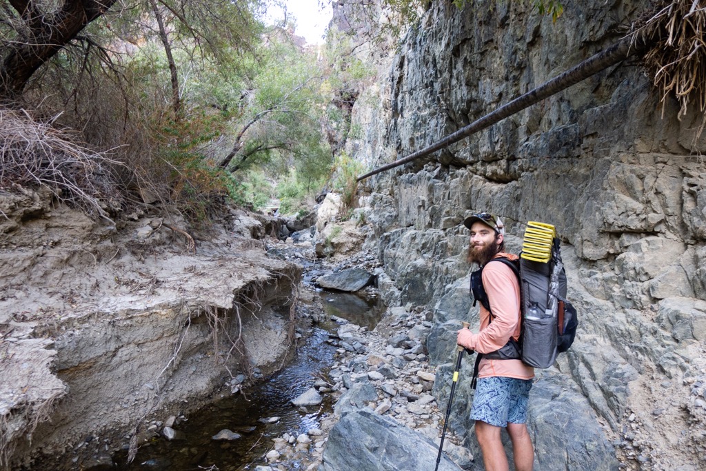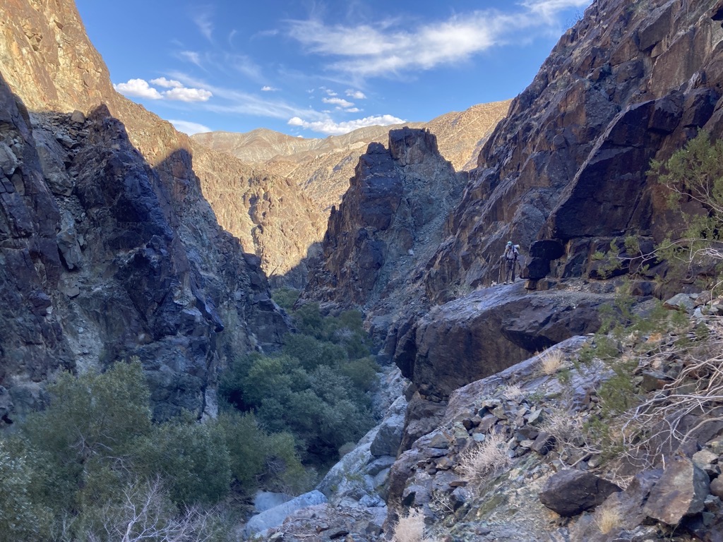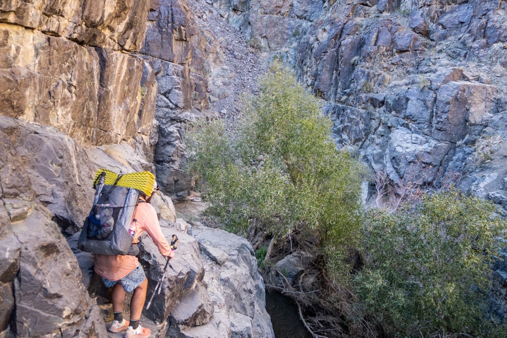 Immediately upon leaving, the complexity and lack of comprehensive information about the route ahead became apparent. The official description had been written with a verbal economy that left plenty of room for interpretation, and our vague memories of vague descriptions in blogs only confused us further. The internet had let us down. There was no consensus on the best way to scramble around the cliffs and narrows above Darwin Falls. However, maybe it was for the best. With the right attitude, figuring out where to go would enhance the fun.