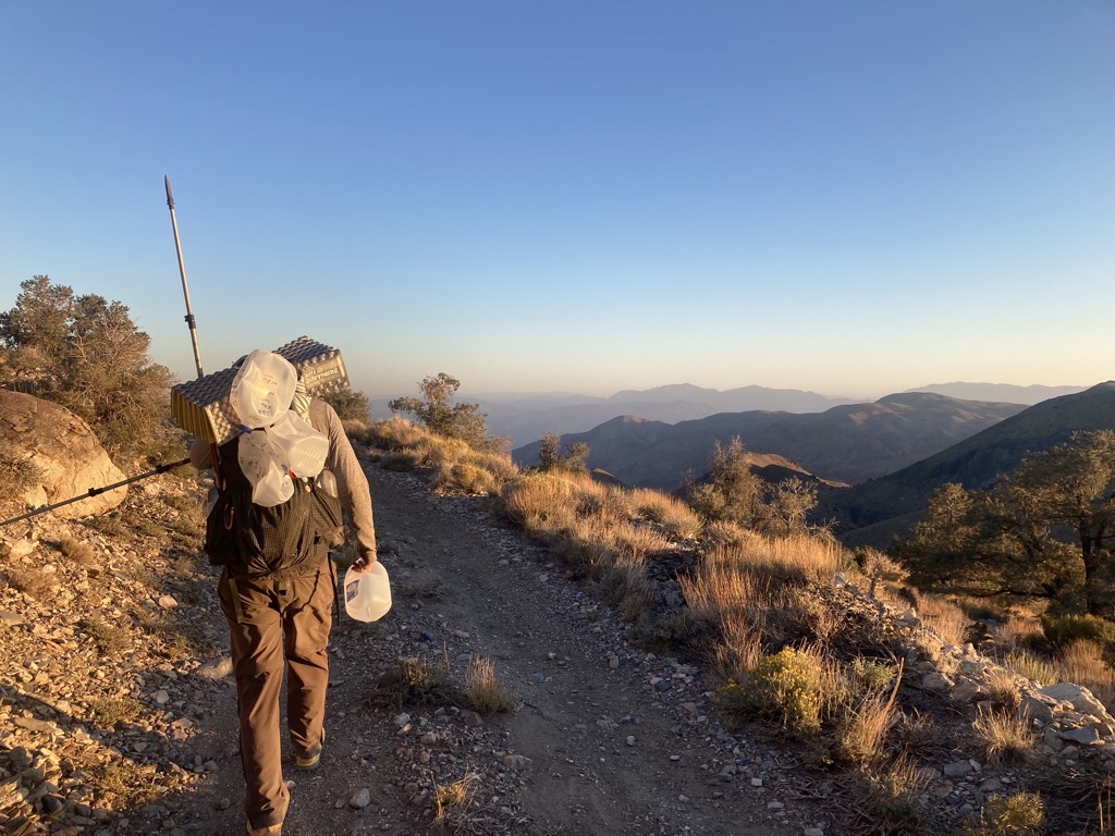 Unexpected and exhausting climbs defined the final miles along the best ridge in the world. By the time we reached our junction, Arthur and I were both at the end of endurance and tolerance for this nonsense. We’d said, “last climb until Lone Pine” enough times seriously that it was now a joke. But then we finally turned off the interminable rollercoaster, heading straight into the low sun. It silhouetted the Sierra and blinded us with an intense glare. It was awful, it was great.