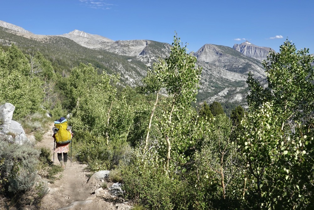 The steps were large and the views up the gorge to the Silver Divide were enticing. I got to the bottom of the switchbacks feeling fine. Flower Power, on the other hand, was in an adrenaline overload. Something about the vertiginous nature of the trail had kicked her fight or flight into overdrive. We sat next to the calmly splashing Silver Creek as she controlled her breath and let her head come back to earth. There was no true explanation for what had caused her vertigo, but fortunately, it was dissipating. That the steep exposure was unexpected probably hadn’t helped, and now that it was over, the illogic of it was disquieting. We’d been down worse, so hopefully this wouldn’t resurface.