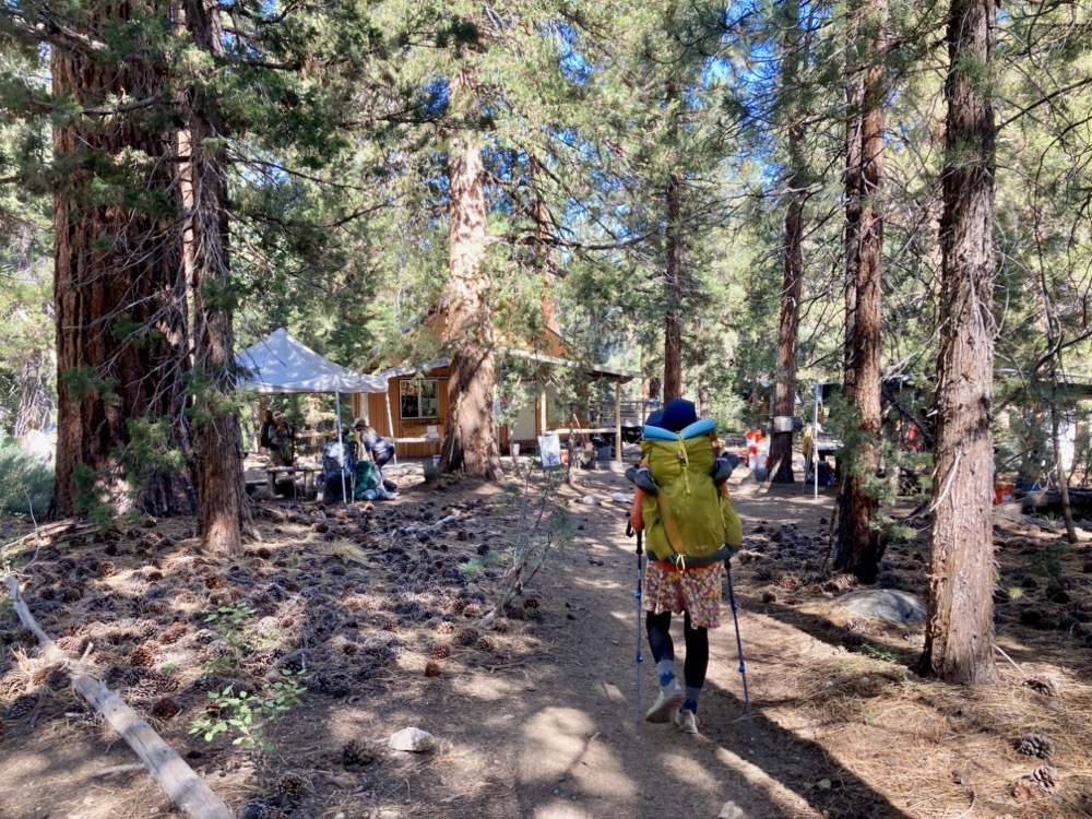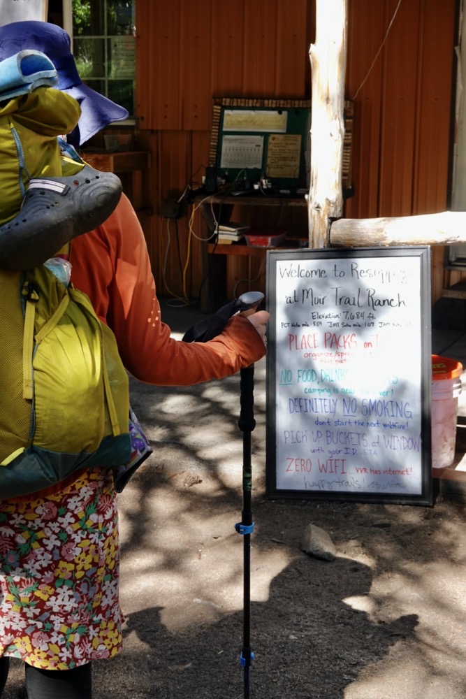 Quickly we were switchbacking down a sun-drenched hillside, surrounded by manzanita and juniper trees. From the valley below the voices of barking dogs drifted up to meet us. We were close. An hour later, I followed Flower Power past a hand-painted sign directing hikers to the right place. Anticipation and nervousness bubbled in my gut. It had been a while since I felt this way. A while since I didn’t know exactly what to expect. Not that I knew every twist and turn of the JMT, but I knew the Sierra. There weren’t too many surprises left for me in the terrain at this point (cue future me laughing), but humans and their ‘systems’ were always a wildcard. How many people would there be at MTR? Would it be hard to navigate? Where were we supposed to camp? How much small talk would be involved? How many eyes would turn on us when we walked out of the woods? Good grief, peopling was fraught with subtleties and awkwardness.