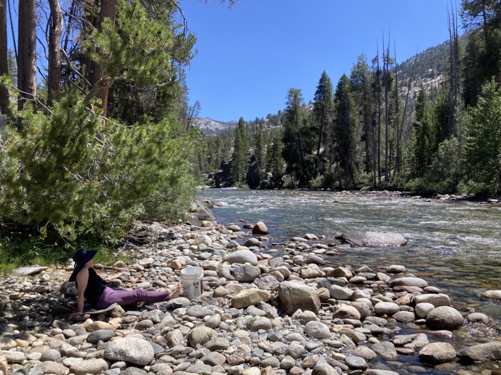 Flower Power and I finally said goodbye and moseyed to the camping area along the shore of the San Joaquin River. We had our pick of the empty tent pads, choosing one closest to the water and large slabs of granite. It was peaceful and warm. We washed in the water, and basked on the warm stone. We ate bean and salsa tacos, and drank a carton of chocolate almond milk that we had sent ourselves. Finally, as the sun was getting low after hours of sublime lounging and chatting with another friend and some new faces, we cooked up the best meal of the hike so far. A repeat from Red’s with a little extra trail hunger as seasoning. Mac n cheese, green beans, and curry lentils. There could not have been a better finish to a relaxing day. It actually felt like two whole days when I lay down for an early night.